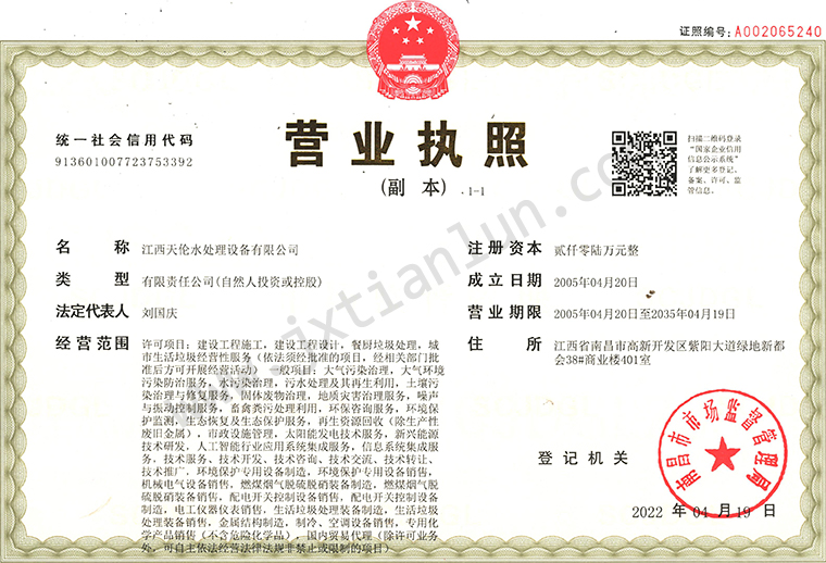 “物理電場新技術”,產品在江西市場推出后,市場占有率達70%。同期天倫成為環保設備制造的知名企業